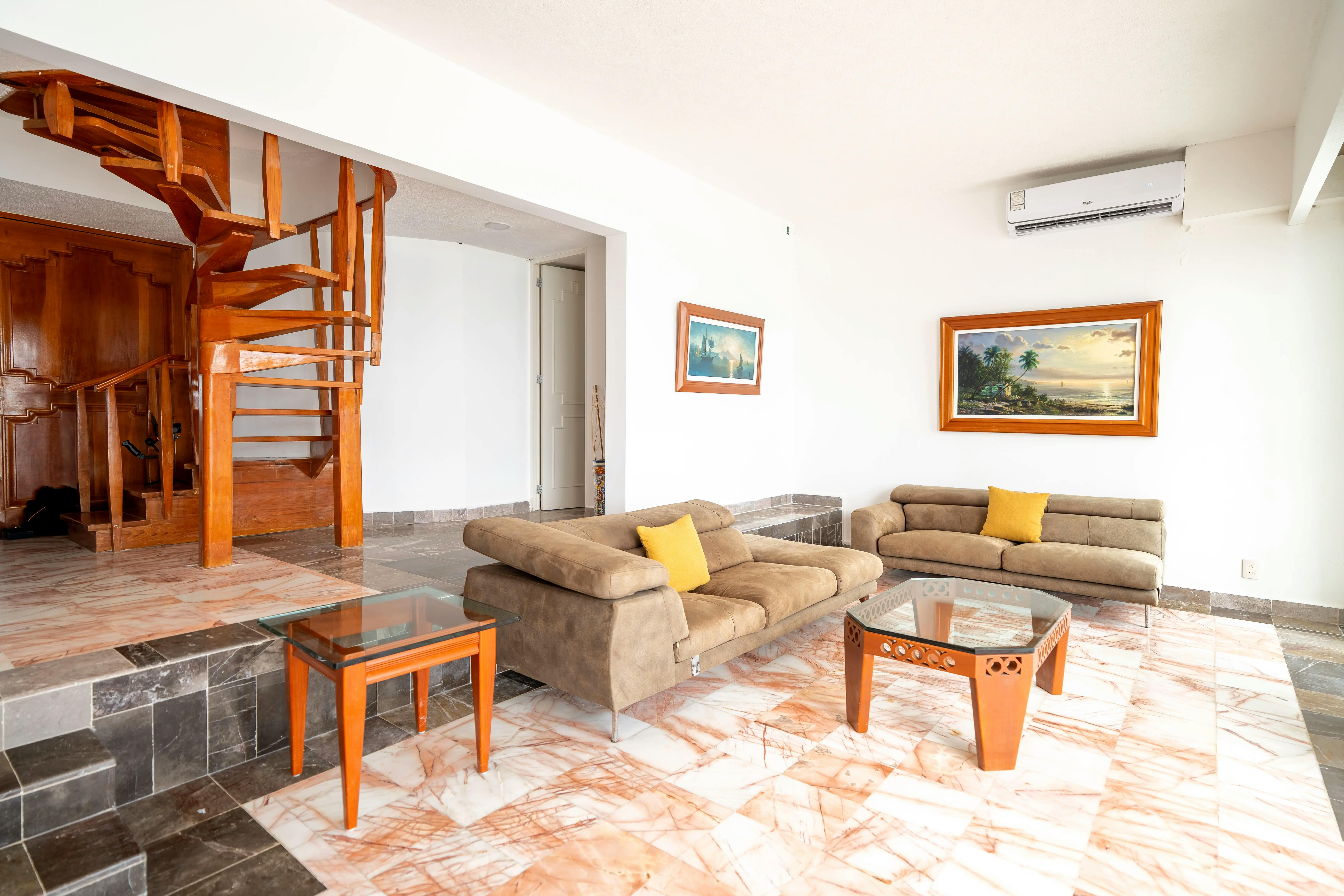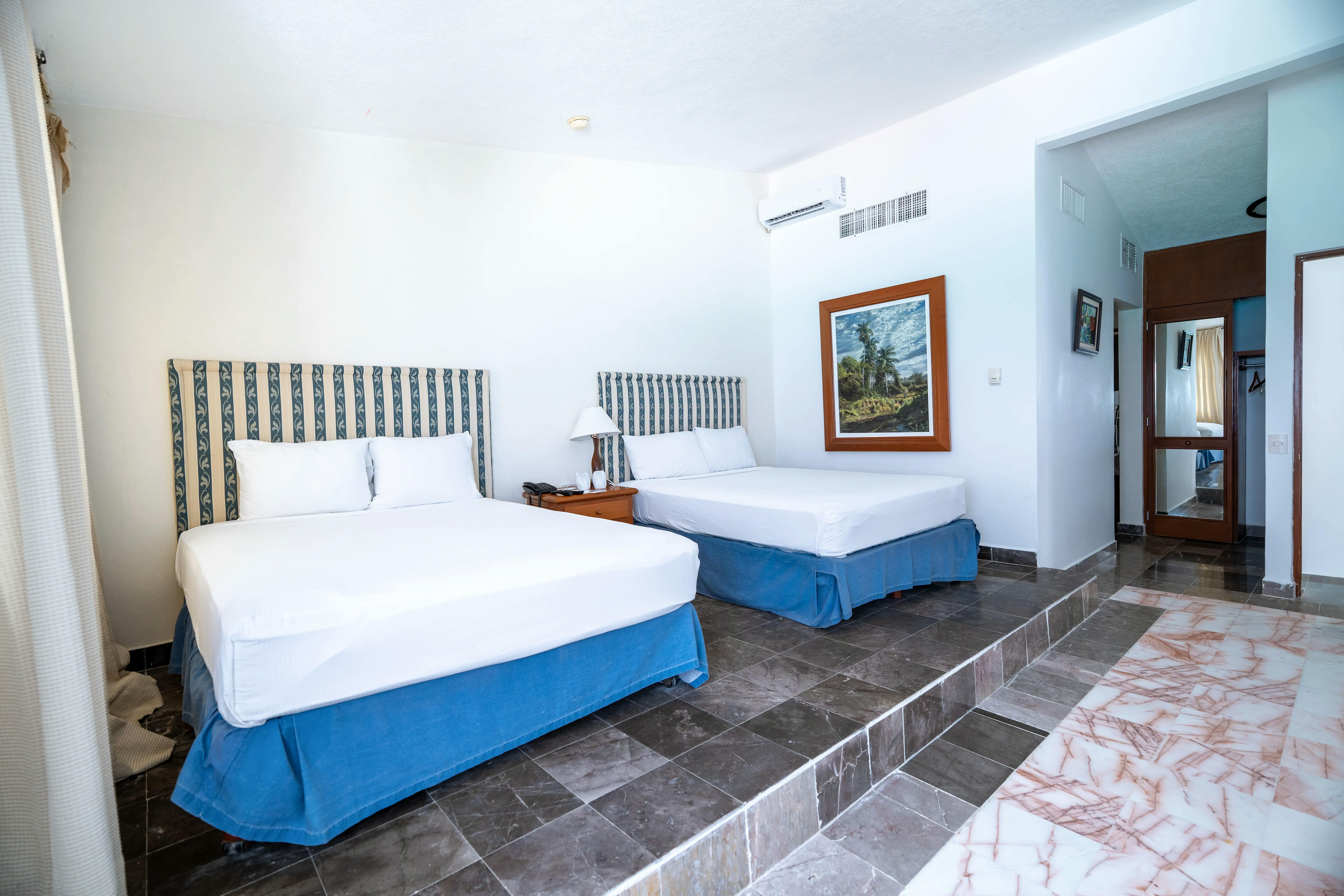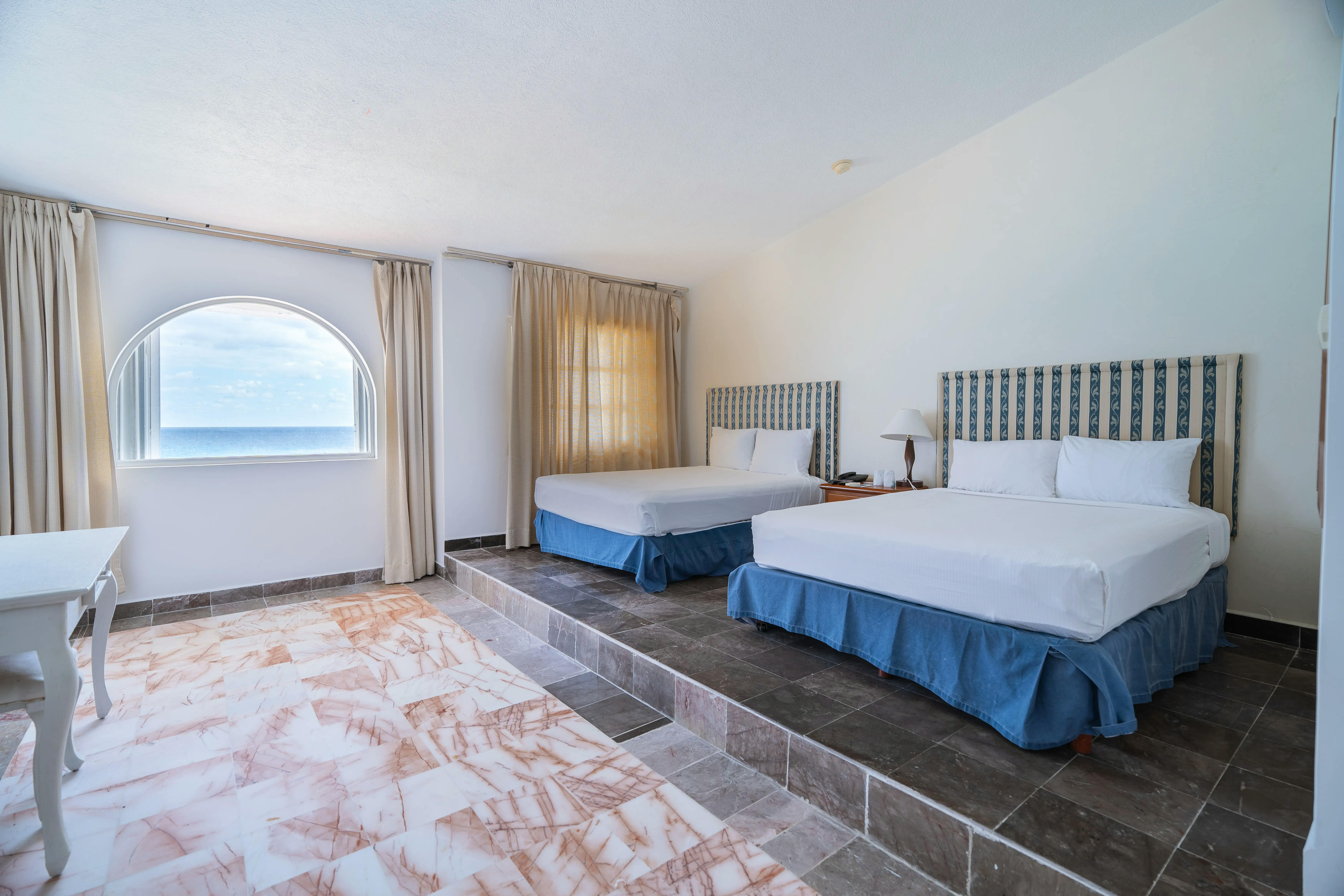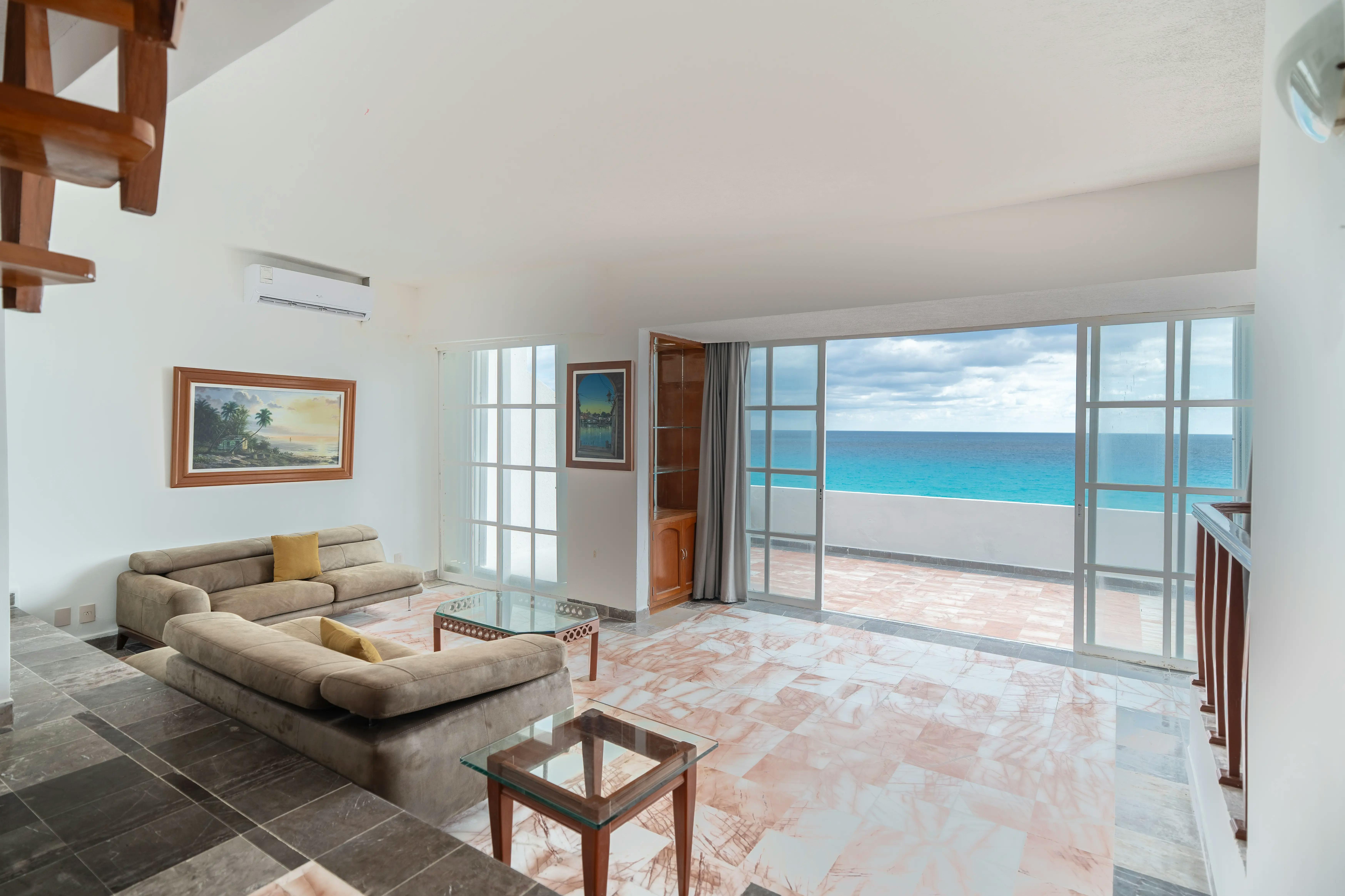 Expansive two-bedroom suite with panoramic ocean views and a large terrace. Two king bedrooms, each with private bathroom. Accommodates up to 6 guests. Located on the upper floor with direct beach access. Ideal for families.